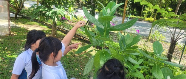 The lessons often take place in our science garden where students, as exemplary leaders, learn about flora and fauna and nature manners. In the course of the learning, our students’ passion in science is ignited and they are given opportunities to be critical and creative thinkers with the questions they ask and share confidently the discoveries they have made. They also develop their practices of science such as observing, classifying, comparing and communicating when they learn about different animal groups and plants.