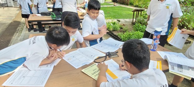 The lessons often take place in our science garden where students, as exemplary leaders, learn about flora and fauna and nature manners. In the course of the learning, our students’ passion in science is ignited and they are given opportunities to be critical and creative thinkers with the questions they ask and share confidently the discoveries they have made. They also develop their practices of science such as observing, classifying, comparing and communicating when they learn about different animal groups and plants.