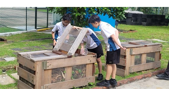 Equipped with the experience from Indoor Hydroponics, our Primary 5 Science Stewards dedicated their time and effort on food sustainability, growing Spanish Spinach in the school’s garden. They used the compost from the P6 Composting programme to enrich the soil. With some tender, loving care, the Spanish Spinach was ready to harvest within weeks. The harvested Spanish Spinach was then taken to the canteen for our canteen vendors to cook - a true definition of the Farm-to-Table concept.